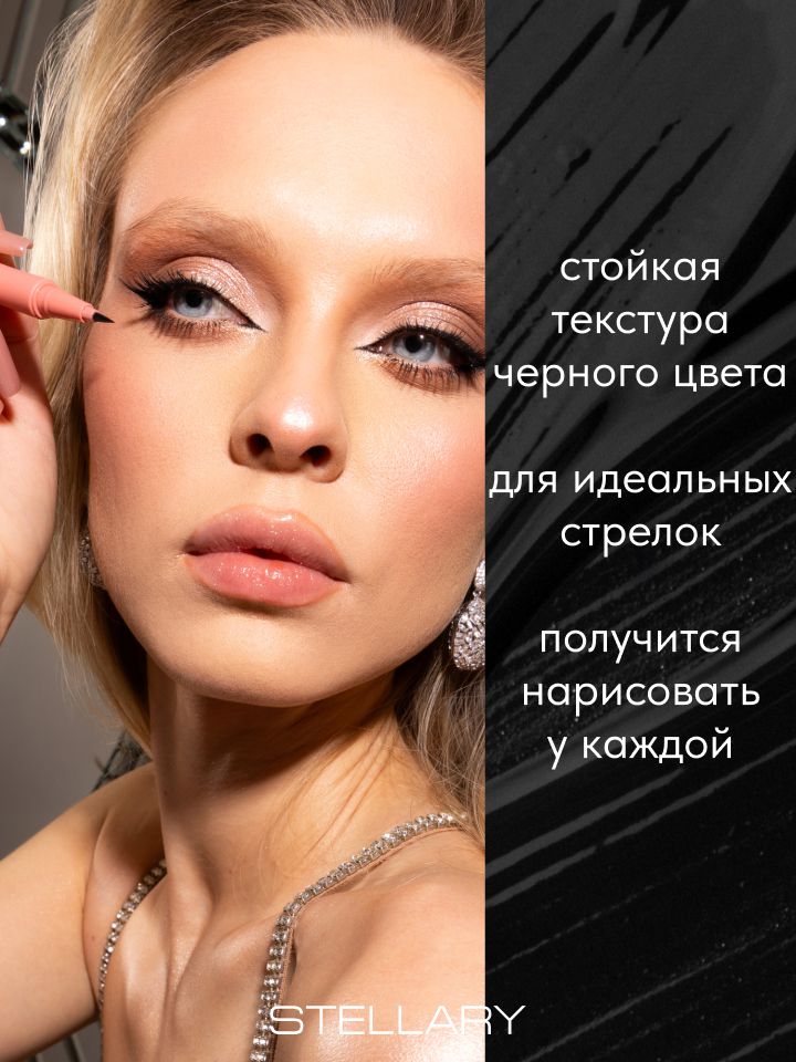 Текстура насыщенного черного цвета быстро фиксируется на коже и стойко держится в течение дня.