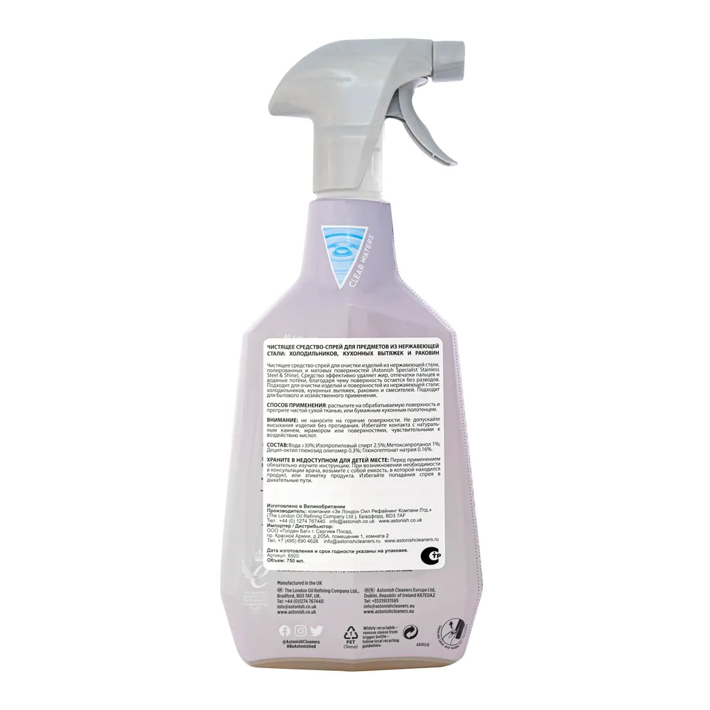 ВНИМАНИЕ: не наносите на горячие поверхности. Не допускайте высыхания изделия без протирания. Избегайте контакта с натуральным камнем или поверхностями, чувствительными к воздействию кислот.